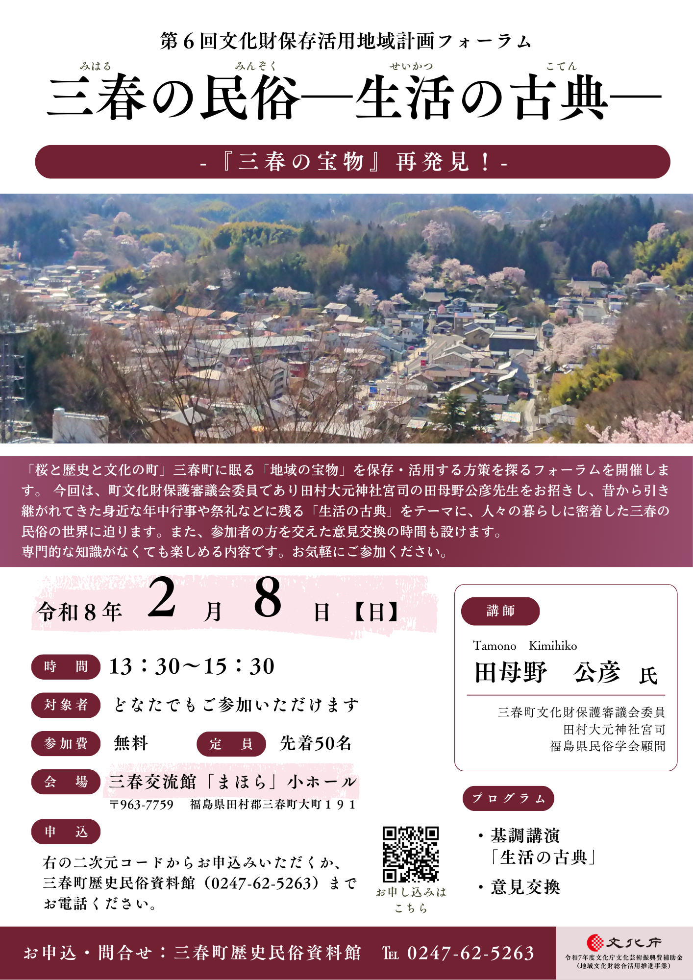 「三春の民俗―生活の古典―」第6回三春町文化財保存活用地域計画フォーラムを開催します