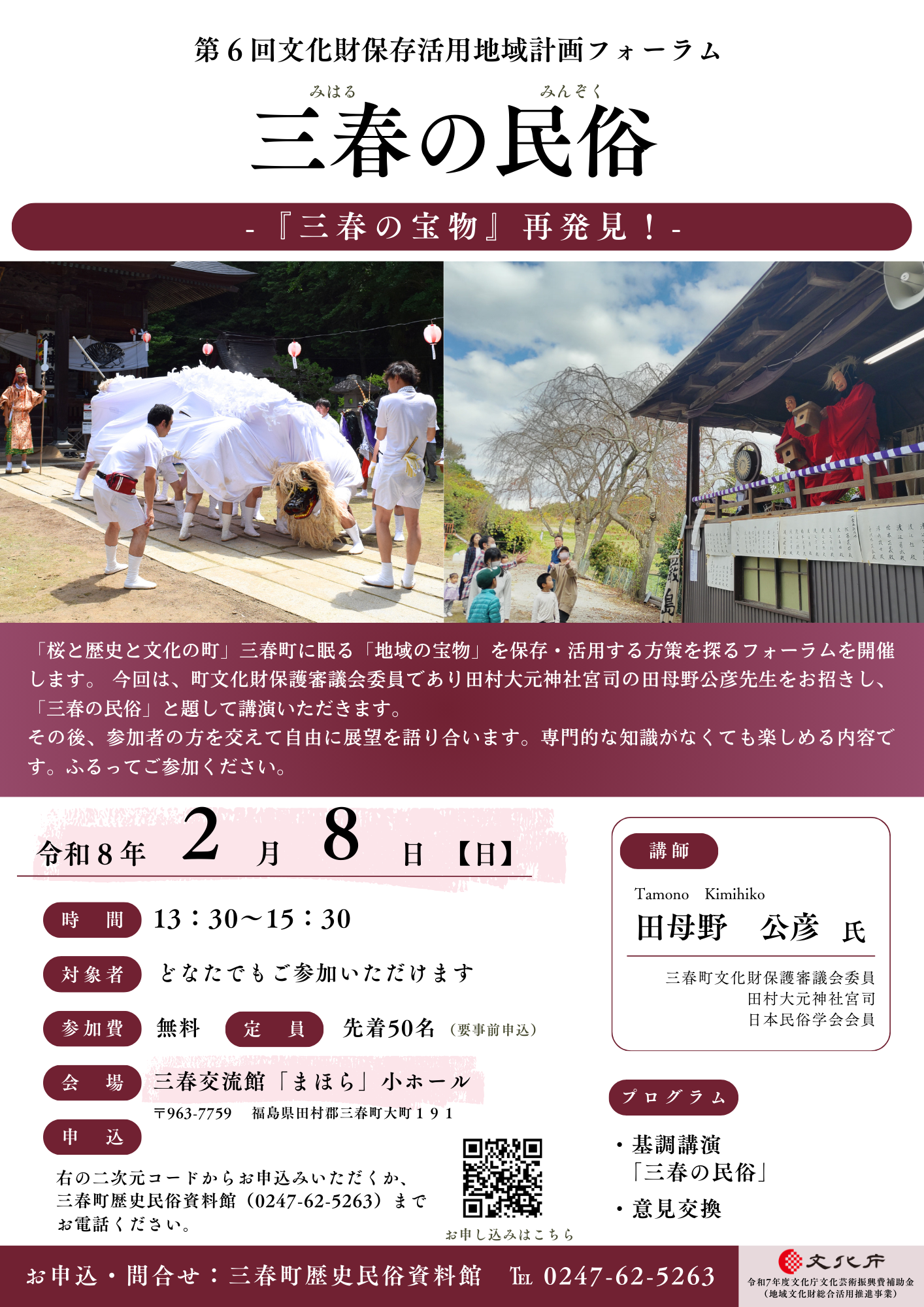 「三春の民俗」第6回三春町文化財保存活用地域計画フォーラムを開催します