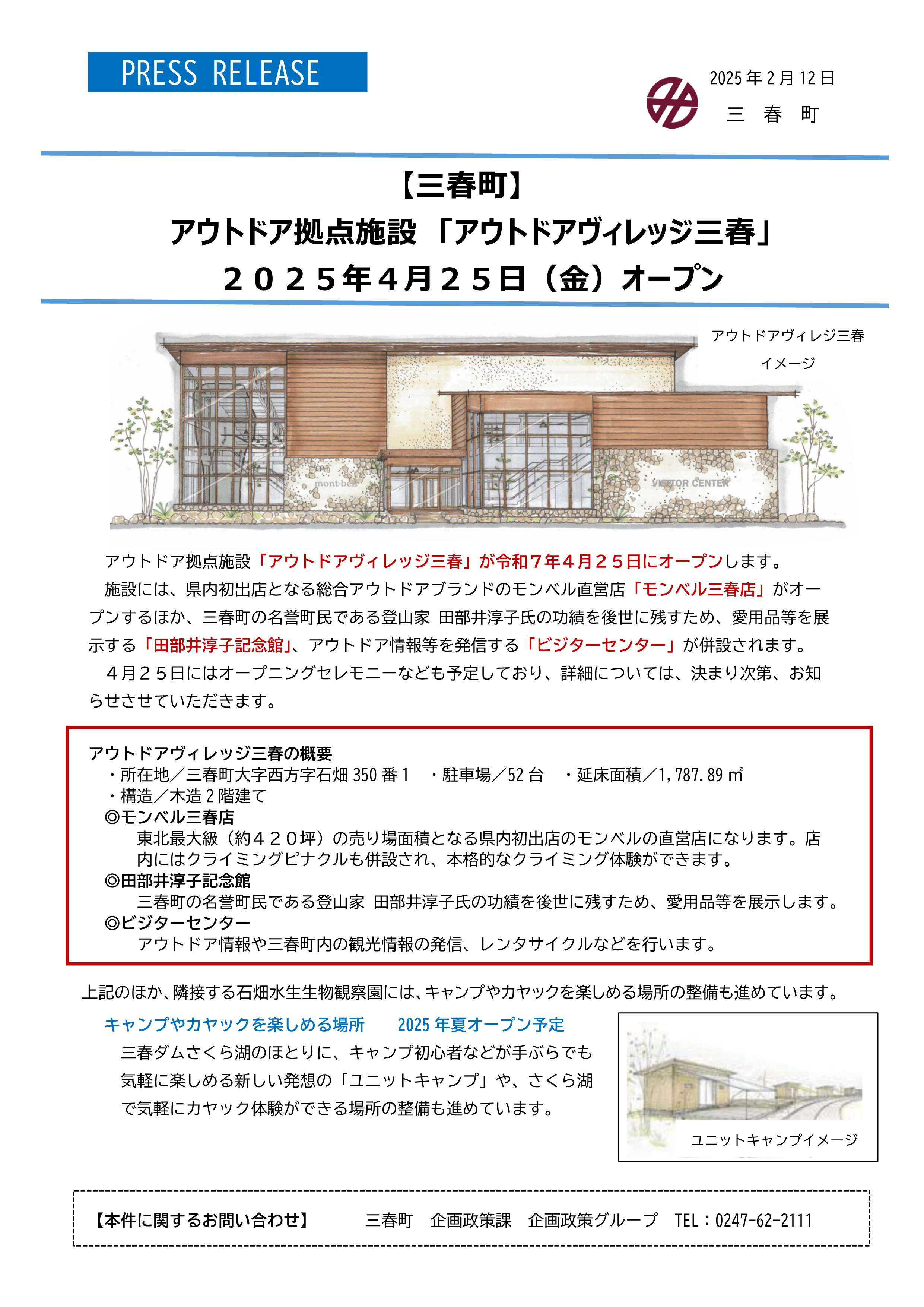 アウトドアヴィレッジ三春/事業概要 | 三春町公式ホームページ【福島県三春町】Miharu Town