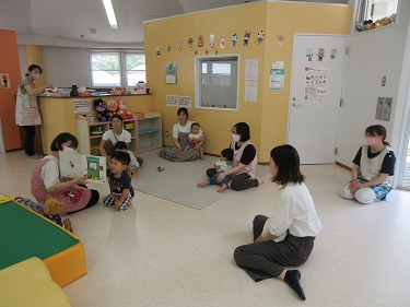 | ・9月の「出前おはなし会」では、楽しい手遊びや絵本の読み聞かせを多くの親子が楽しみました!優しい読み聞かせボランティアの方が、子どもたちに合わせて様々なお話を読んでくれます。 | ||