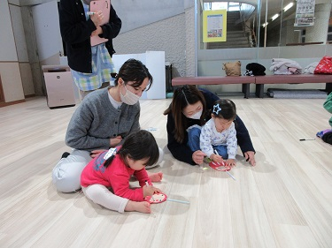 | ・今年度最後の「親子運動遊び教室」を行いました。ロープやペットボトルなどを使った活動や「だるまさんが」の大型絵本や製作をして親子で楽しみました。 | ||