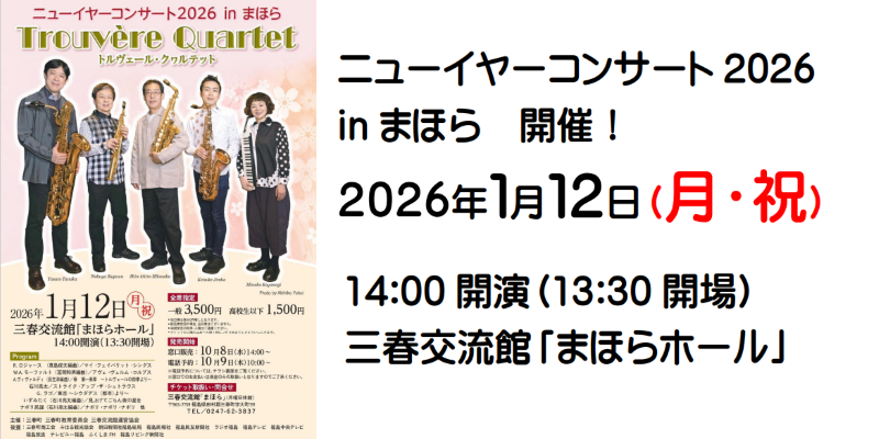 令和7年10月25日(土)14:00より三春交流館「まほら」にて「まほらコーラスフェスティバル2025」を開催します。三春町内で合唱活動を行う三春小学校、三春中学校、岩江中学校、田村高校の各合唱部、ミ...