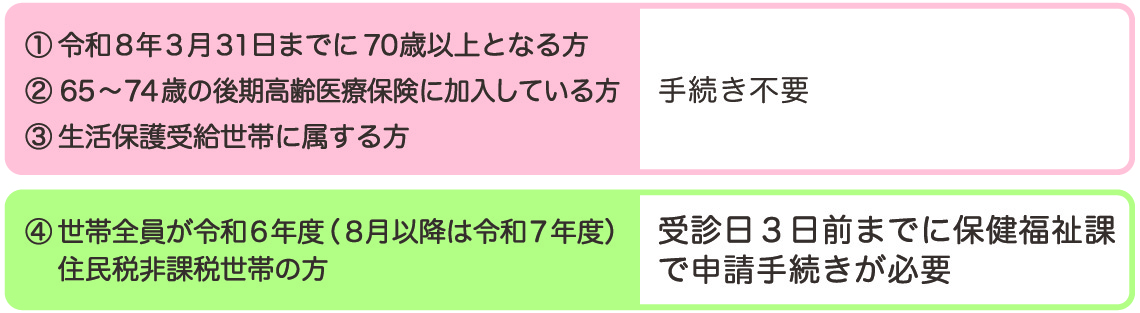 ④の対象の方は、保健福祉課窓口にて以下の書類の提出をしてください。